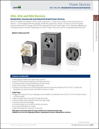 • USA, Canada, MexicoDual Power Vinyl Angle Plug, 30 Amp 250 Volt AC, NEMA 6-30P or 50 Amp 250 Volt NEMA 6-50P, 2-Pole 3-Wire Grounding, Straight Blade, Commercial Grade, Color: Black, Replaced by Cat. 931-E